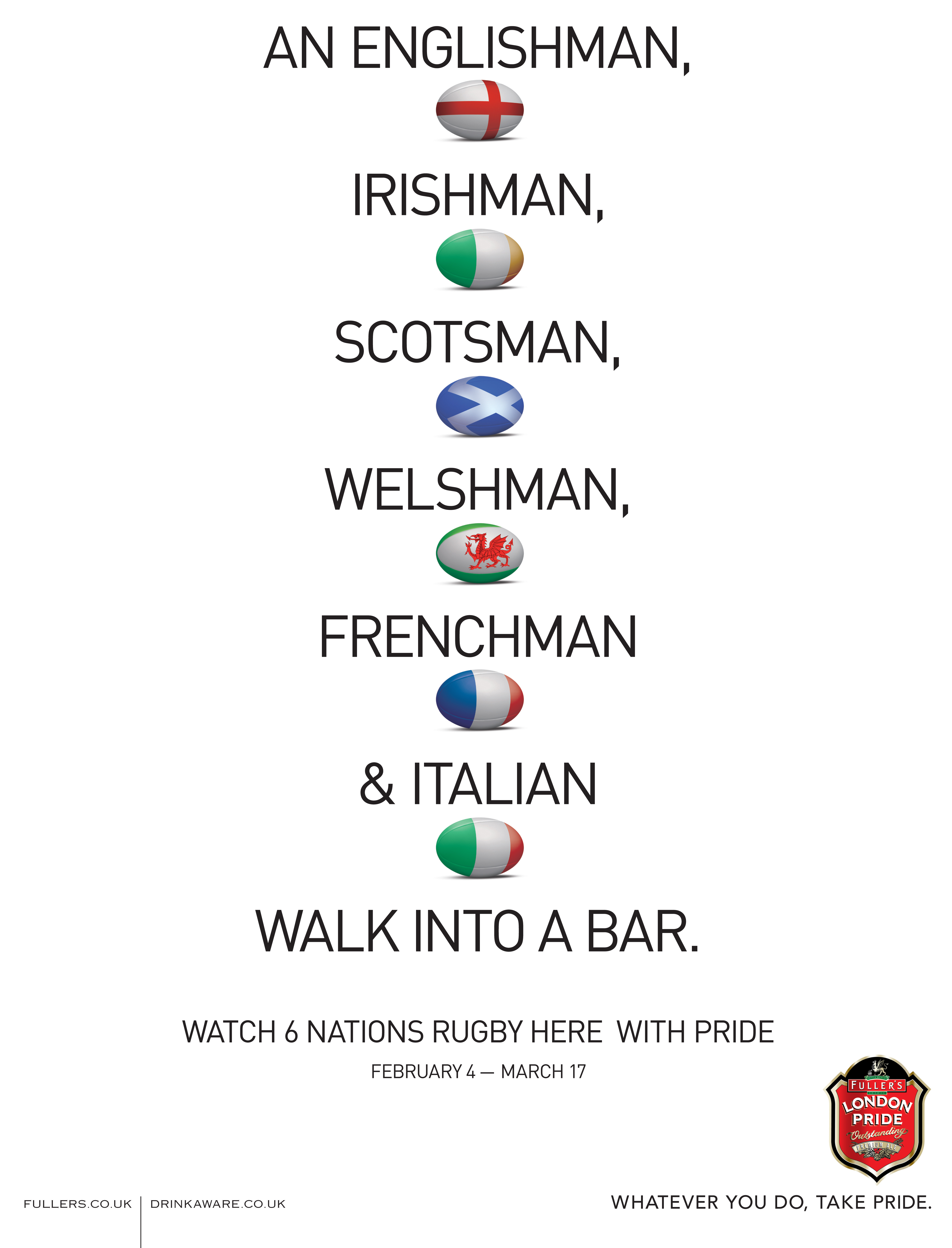 A range of work that appeared within Fuller’s pubs. From tent cards, to sales promotions Fuller’s use their pubs and flagship beer to talk to their drinkers about everything from up and coming sports events, to donating to charity.