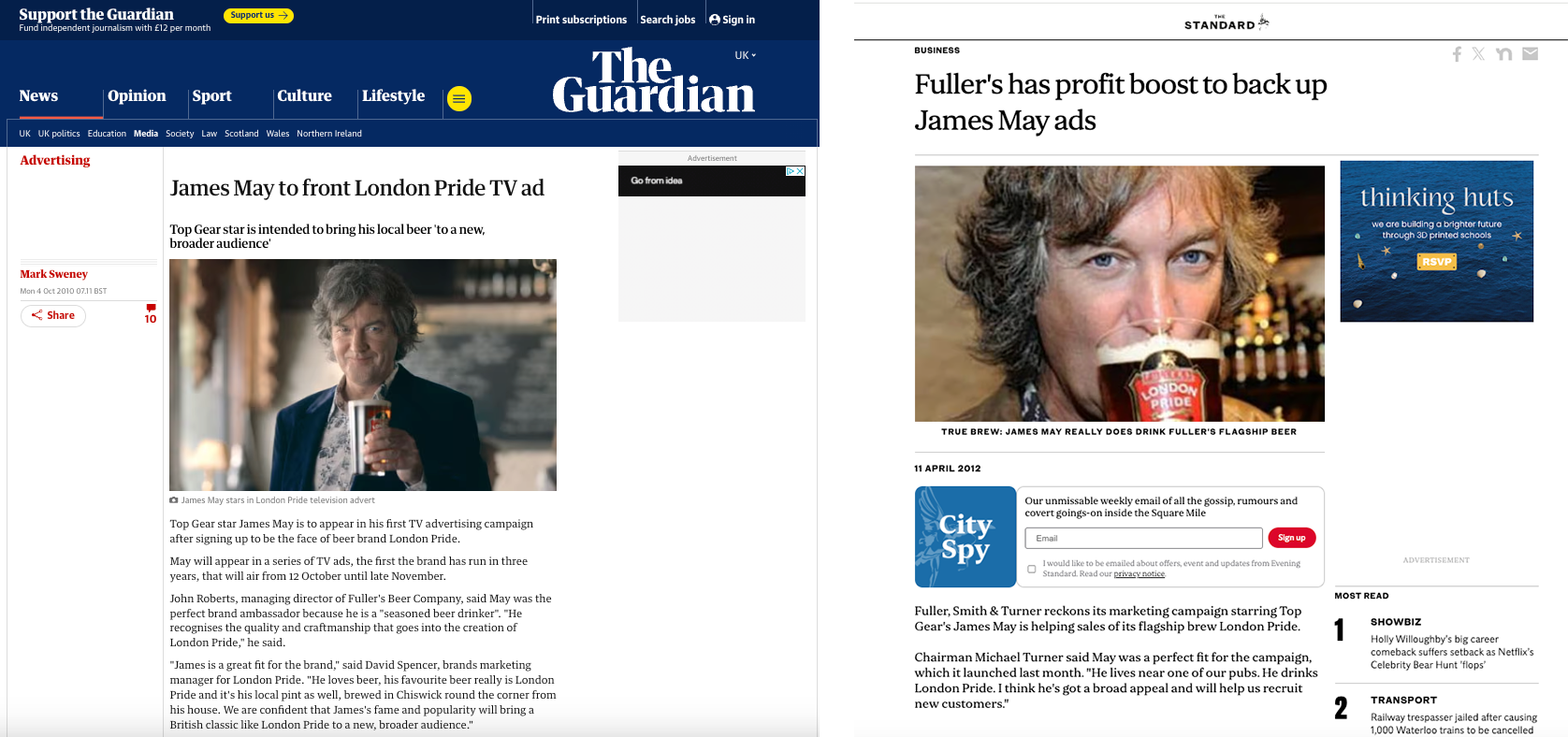 We approached James May, that jolly nice chap off the telly, who also lives within ‘smelling’ distance of the famous Chiswick brewery. He agreed to be their spokesman, and we developed a campaign that included TV, digital, print and in-pub executions.