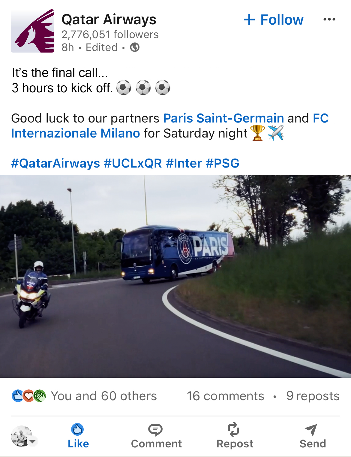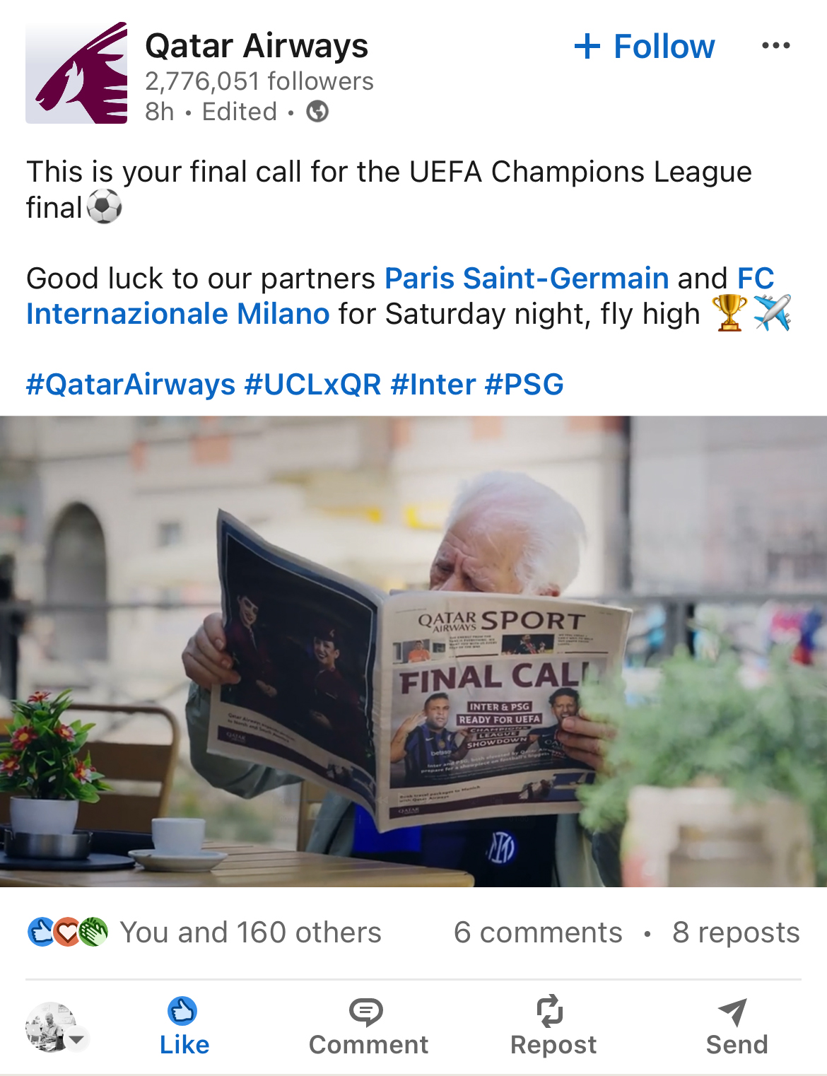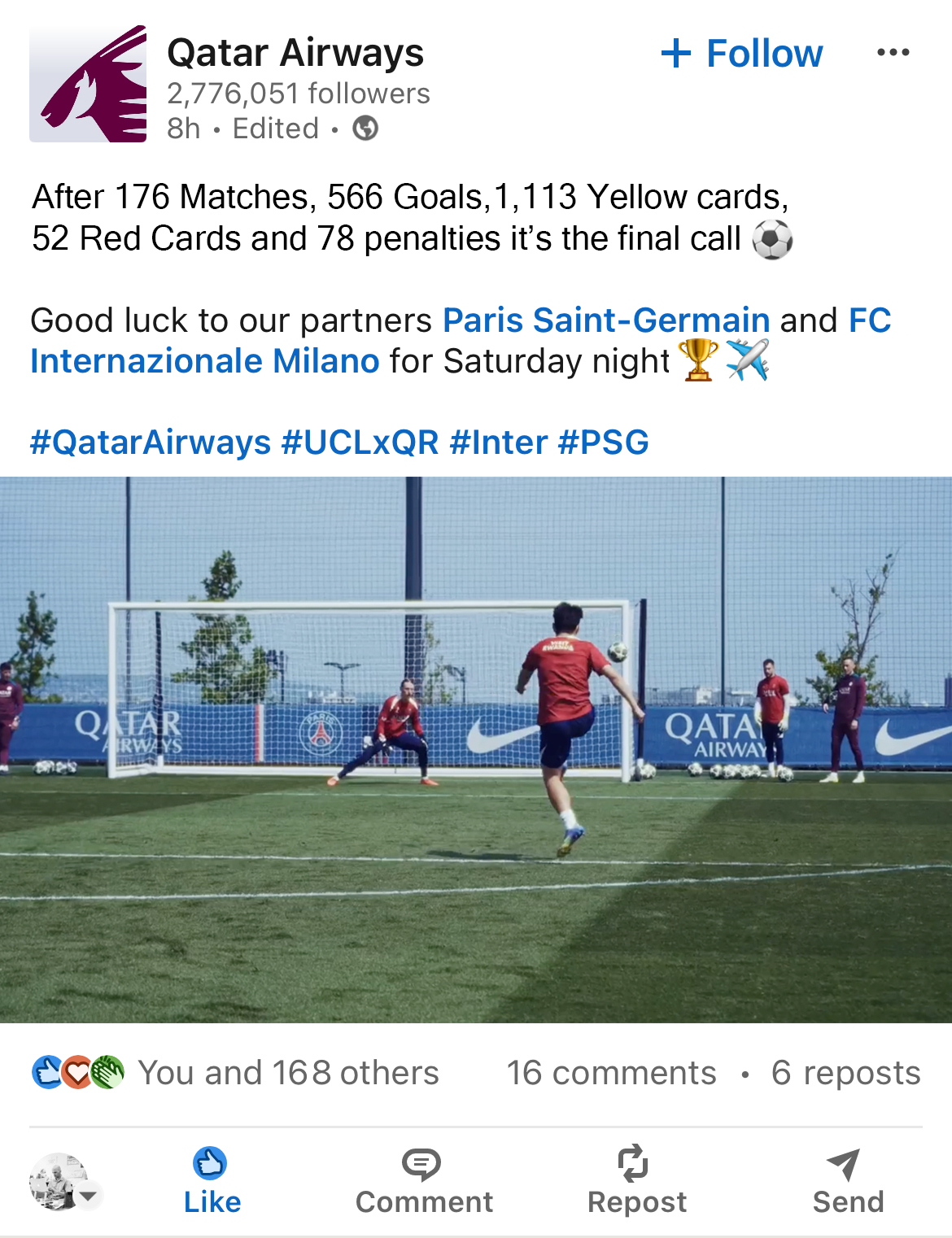 Qatar Airways proudly sponsor the UEFA Champions League.
